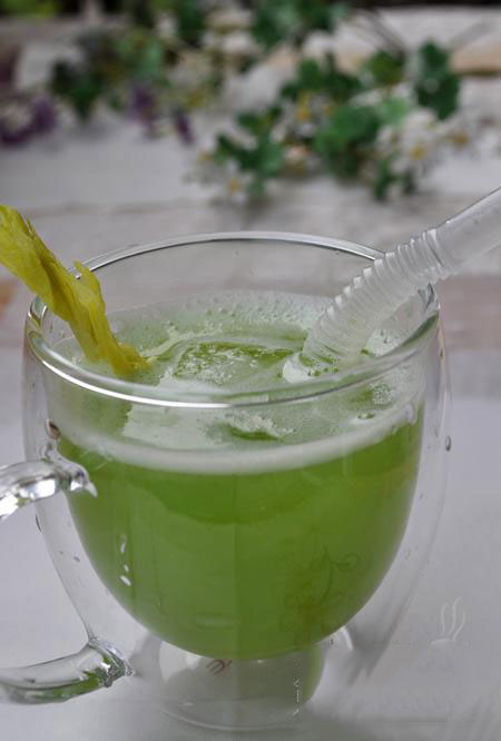 1. cần tây ngâm nước muối nhạt rồi rửa sạch, cắt bỏ gân già, dùng dao vỗ nhẹ vào lưng, cắt thành từng đoạn, cho vào máy ép;