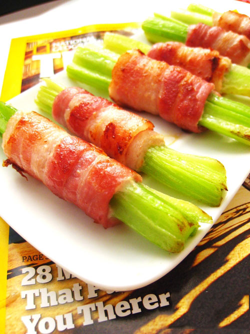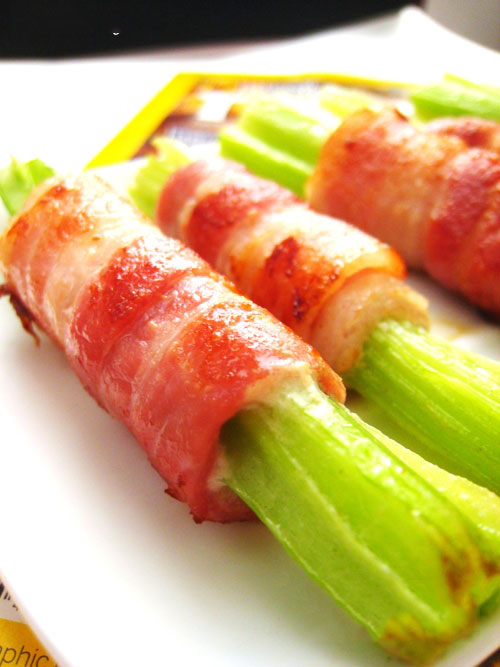 Cần tây và thịt xông khói cuộn
