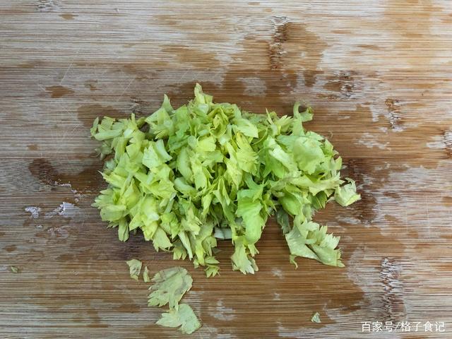 Bước đầu tiên: Rửa lá cần tây bằng nước sạch, để ráo nước một chút rồi thái nhỏ để sử dụng sau.
