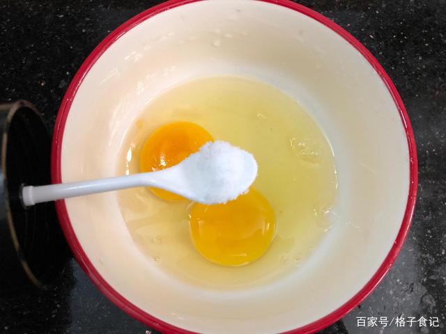 Bước 2: Đập trứng ra bát, thêm một lượng muối thích hợp và một thìa cà phê nước. Thêm một chút nước, trứng khi chiên sẽ mềm hơn.
