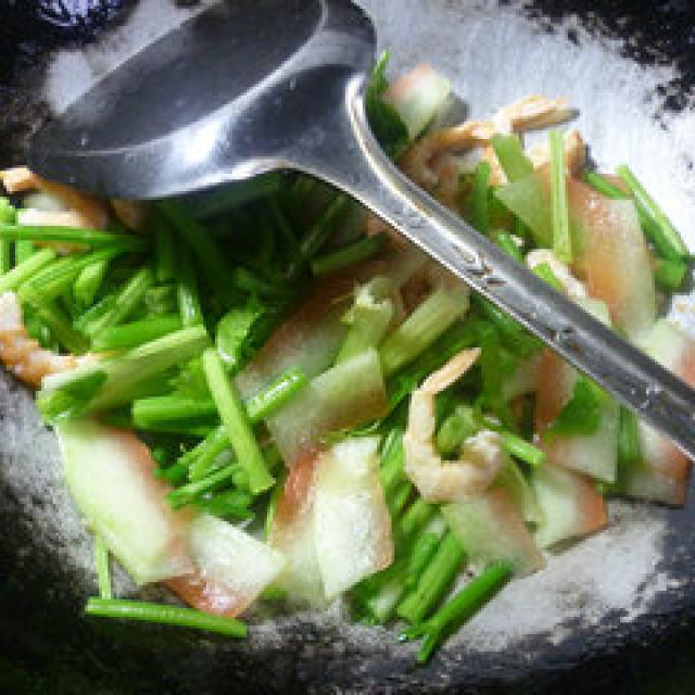 Bước 1: Nguyên liệu: cần tây, vỏ dưa hấu, tôm khô