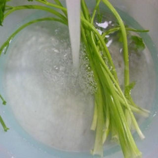 Bước 3: Lấy phần lá và rễ của cây cần tây, rửa sạch.